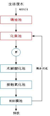 2.根據(jù)該公司污水特點,針對廢水的性質,生產(chǎn)廢水采用隔油池+化糞池+水解酸化池+接觸氧化池+MBR膜池,出水排放。